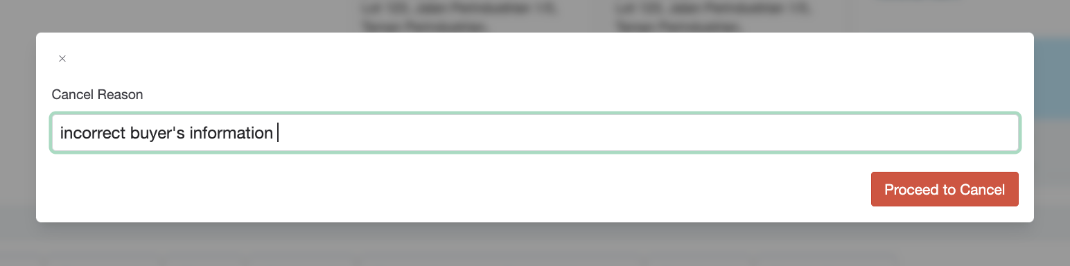 Insert the reason for the cancellation and press the ‘Proceed to Cancel’ button.