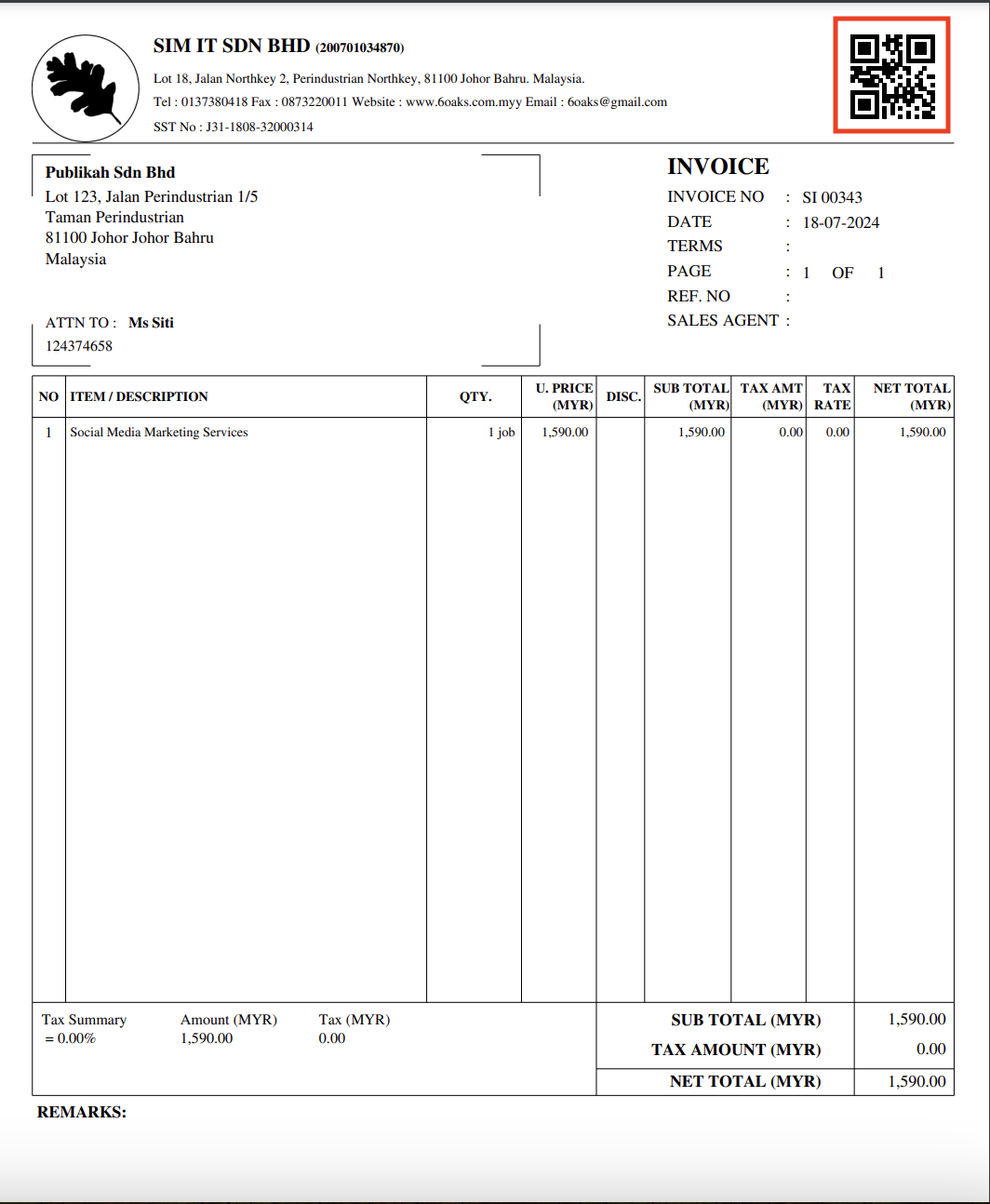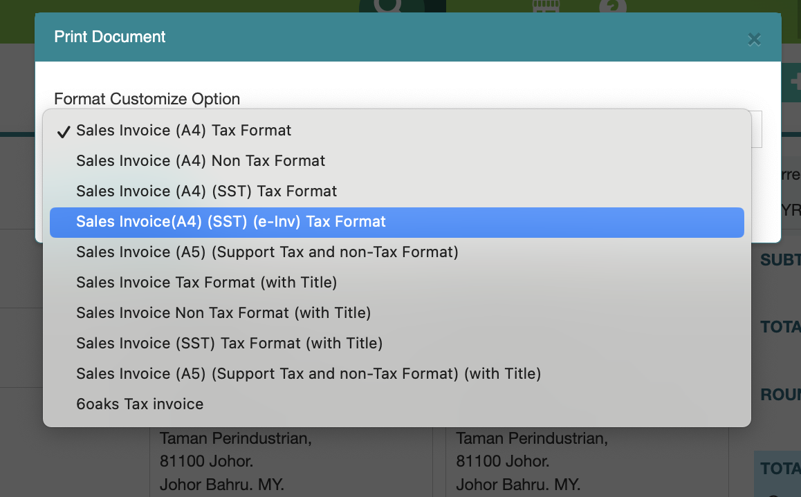 Users can also print out the e-invoice via the default print format which displays the QR code for customers to scan and view the details on the MyInvois portal.